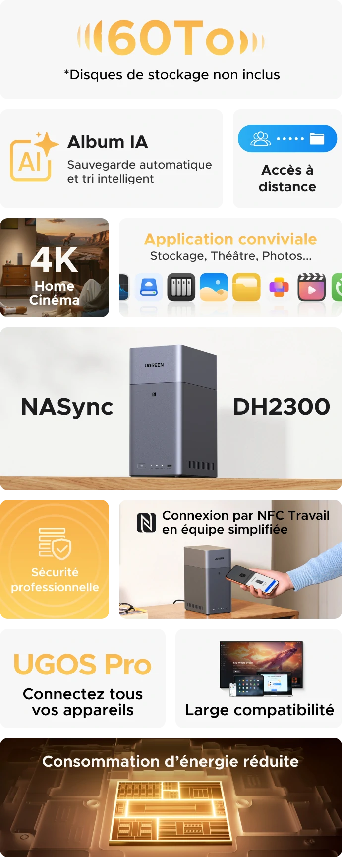 NAS UGREEN NASync DH2300 - 2 Baies - 60 To