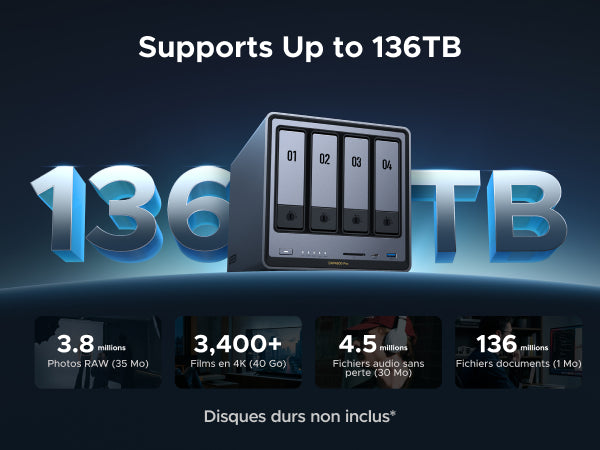 - Jusqu'à 136 To de stockage : Gardez tout en sécurité : Jusqu'à 47 millions de photos de 3 Mo, 142 millions de documents de 1 Mo ou 92 000 vidéos de 1,5 Go peuvent y trouver leur place.