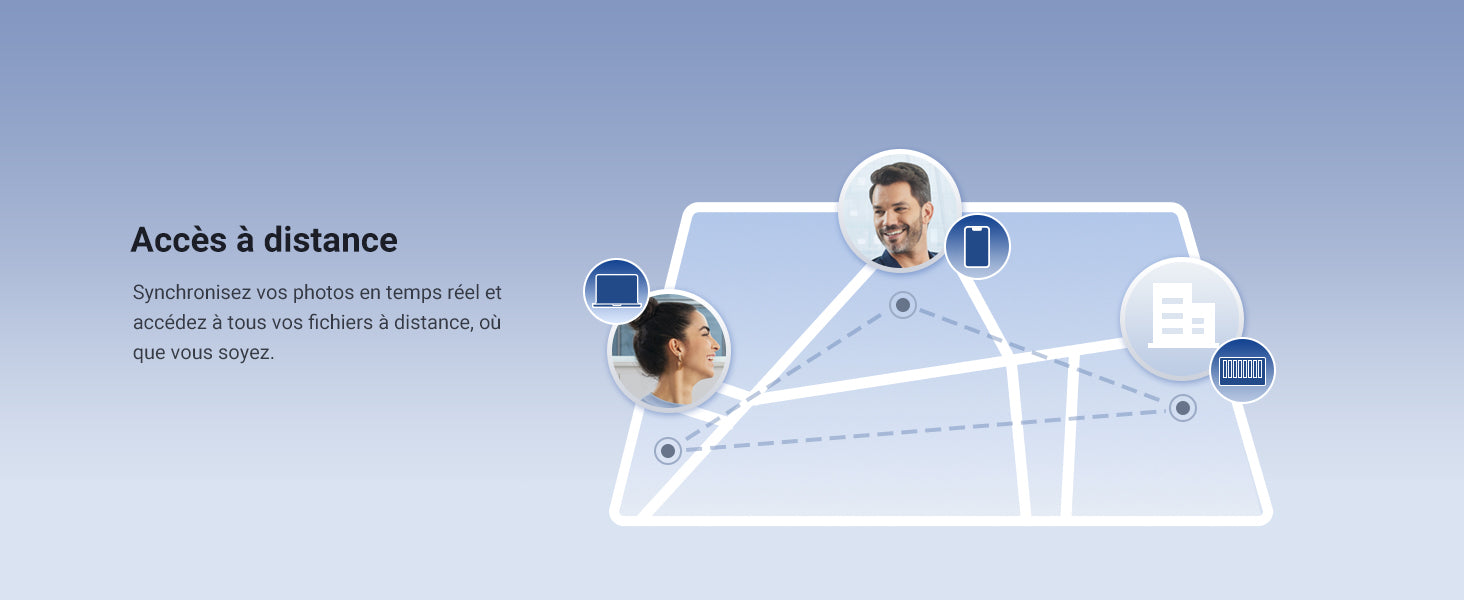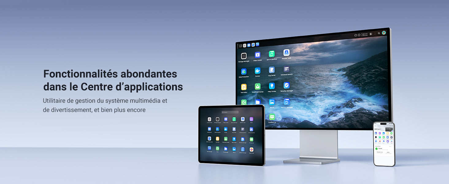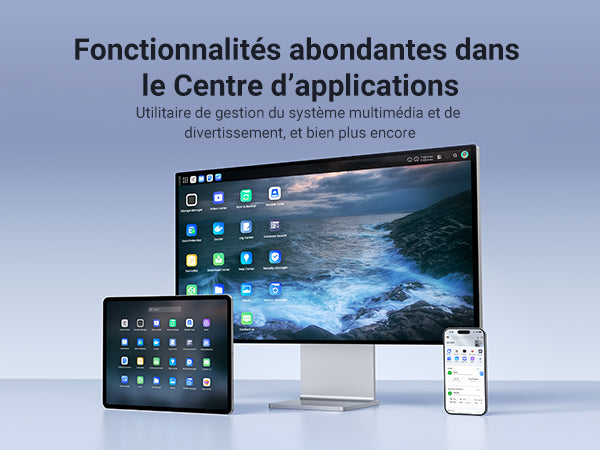 - Application tout-en-un : Plutôt que de télécharger des applications individuelles pour chaque fonction, l'Application NAS intègre toutes ces fonctions en un seul endroit. Accédez au Gestionnaire de stockage, Fichiers, Photos et plus encore, depuis un emplacement unique et pratique.