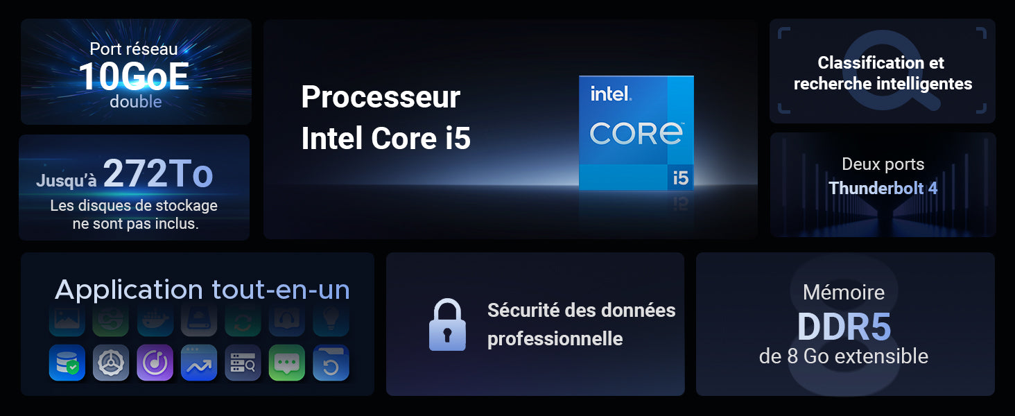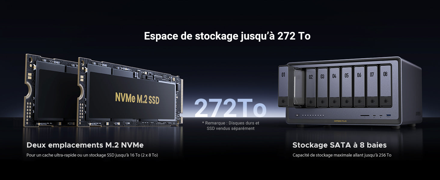 | Stockage maximum | 272 To(8x 32To + 2x 8To) | |