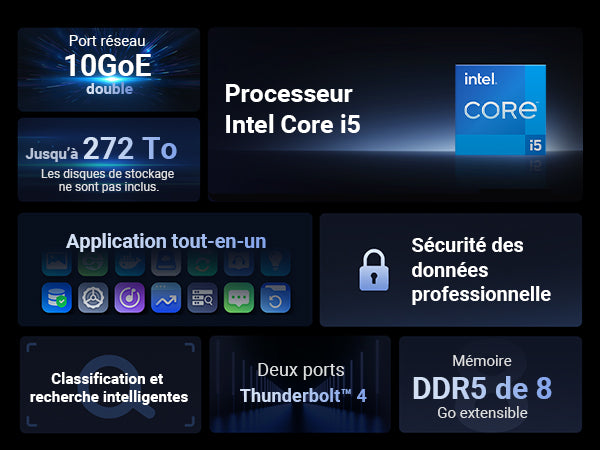 - Double port réseau 10GbE : Deux ports réseau haute vitesse 10GbE pouvant être agrégés pour offrir une bande passante de 20 G, permettant des vitesses de téléchargement allant jusqu'à 2 500 Mo/s.