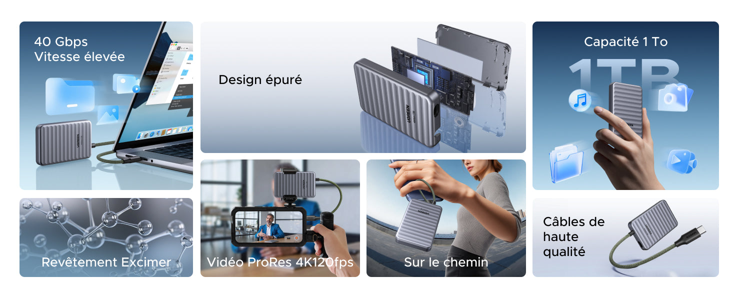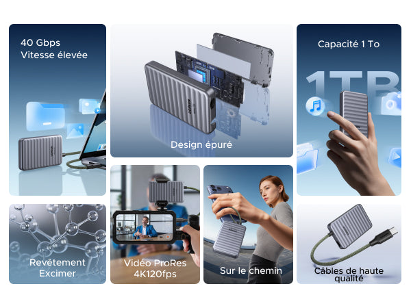 40 Gbit/s ultra-rapide | 1 To de capacité | Câble intégré | Résistance aux chutes de 2 m