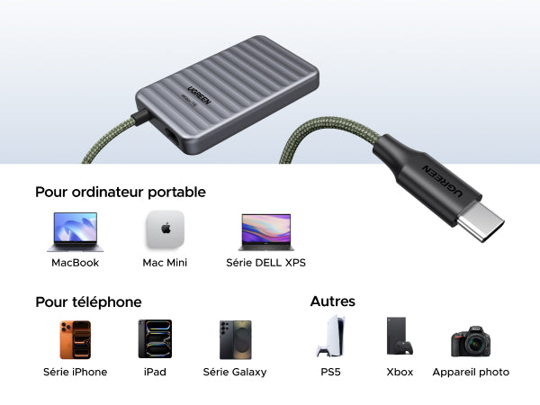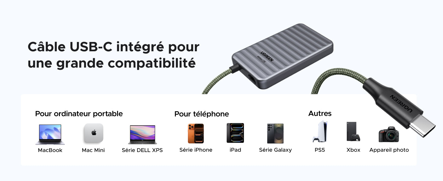 - Large compatibilité : Architecture USB4 rétrocompatible avec de nombreuses interfaces. Idéal pour ordinateurs, smartphones, Mac mini, consoles, appareils photo et bien plus.