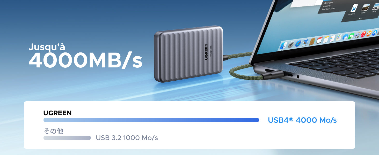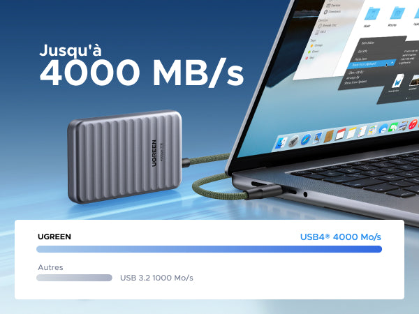 - 40 Gbit/s – Transfert ultra-rapide : Le protocole USB4 et la mémoire 3D NAND offrent jusqu'à 4000 Mo/s – 20x plus rapide que les disques SATA, 4x plus rapide que les modèles 10G.