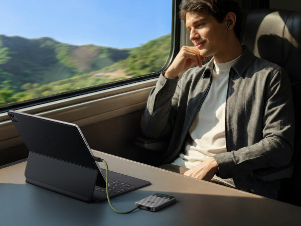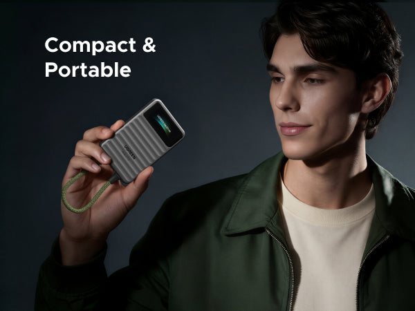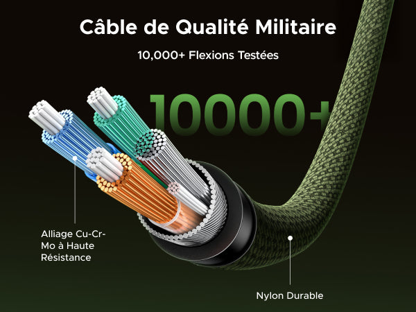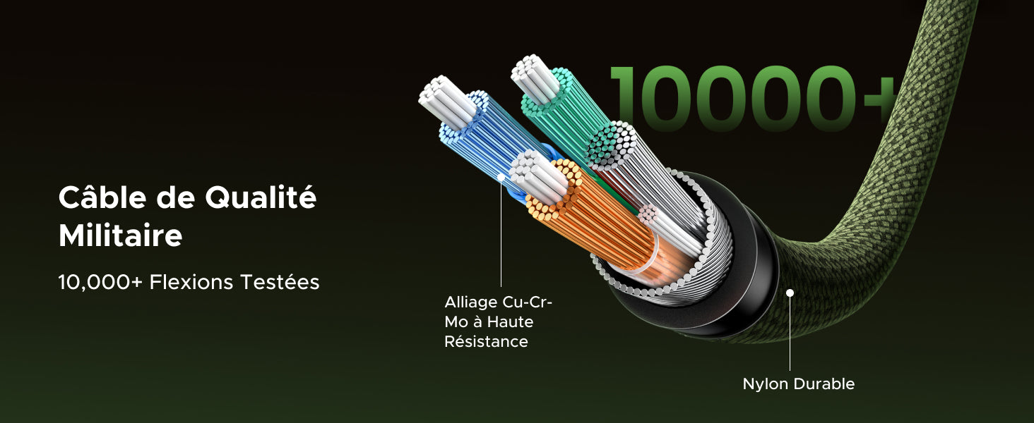 - Câble intégré : Câble USB-C tressé robuste intégré – pas de câble supplémentaire à transporter, idéal pour les déplacements. Résistant et ultra-portable.
